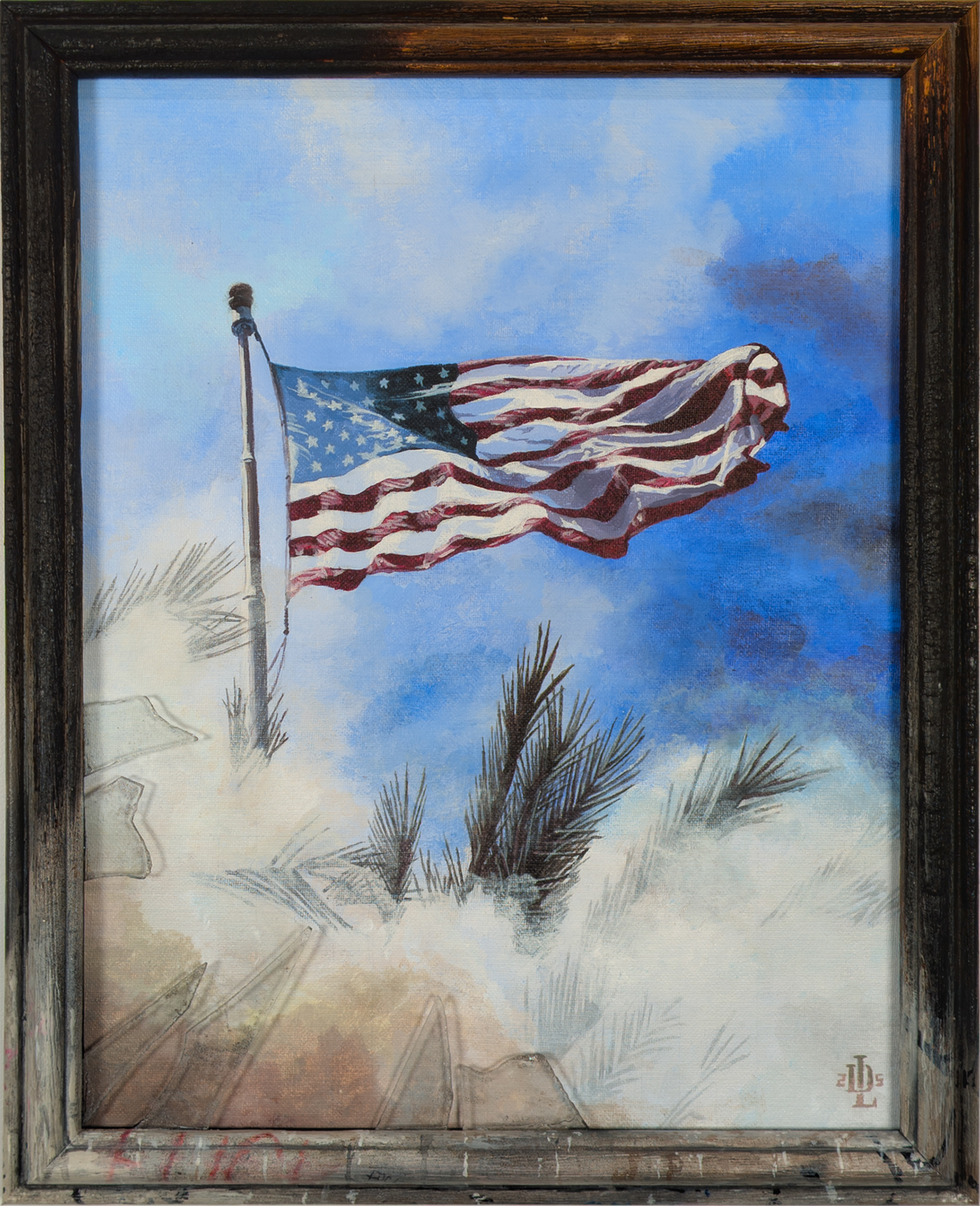 Acrylic on Canvas Board, Glass, Salvaged Wood